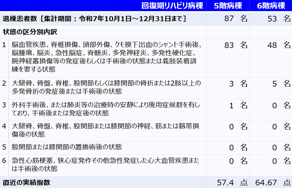 ●回復期リハビリテーション病棟入院料1(5階病棟) 50床