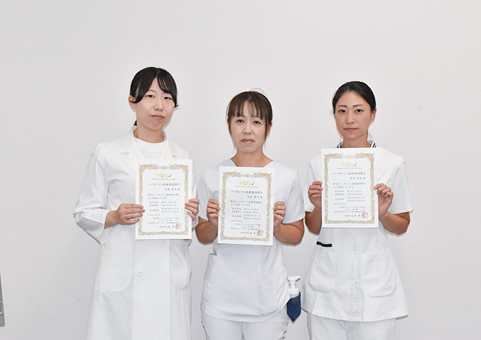 2025年7月26日に開催された「第14回PDナース・メディカルスタッフ研修会」において、当院から薬剤師1名、外来看護師1名、病棟看護師1名が参加し、全員が確認テストに合格し「パーキンソン病療養指導士」の資格を取得いたしました。
